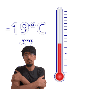 a man is standing next to a thermometer that says 19 degrees celsius