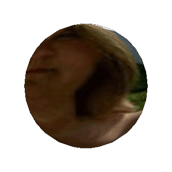 Animated sticker featuring two abstract spheres, one brown and one reflecting a green field with lights, associated with 2906 Brevard.