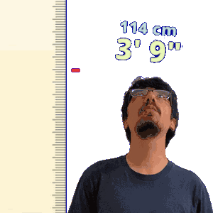 a man 's height is being measured by a ruler that says 114 cm 3 ' 9 "