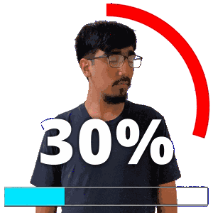 a man with glasses and a beard stands in front of a loading bar that says 30 %