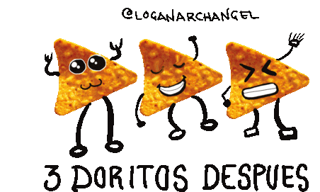 Animated sticker featuring three dancing Doritos chips with the text '3 Doritos Después' and '@LOGANARCHANGEL'.