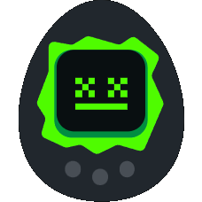 A digital pet device cycles through error faces, a 'KICK' message, and a happy face, symbolizing a ban or block.