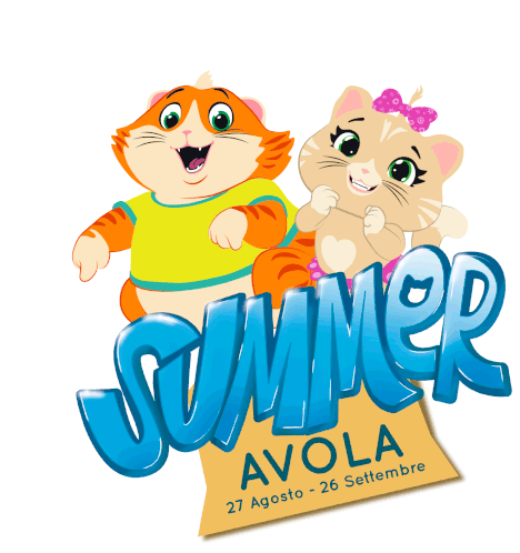 Two cheerful 44 Gatti characters, Lampo and Milady, celebrate the Summer Avola event from August 27 to September 26.