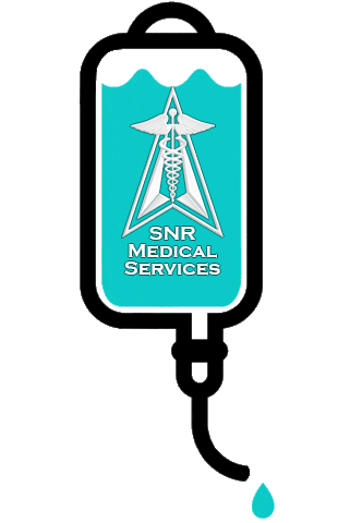 Sngsupergirl's SNR Medical Services logo, an IV bag with a star-shaped emblem and a dripping teal drop.