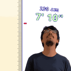 a man with glasses stands in front of a ruler measuring his height