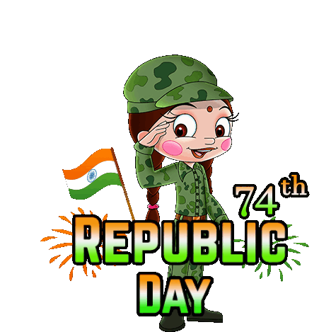 Chutki from Chhota Bheem celebrates India's 74th Republic Day, saluting with the Indian flag in this patriotic sticker.