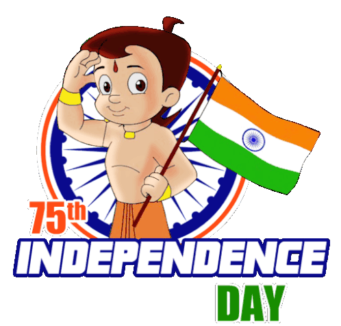 Chhota Bheem salutes the Indian flag, celebrating the 75th Indian Independence Day with patriotic spirit.