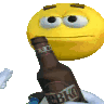 A yellow smiley face with a tired expression drinks from a beer bottle.