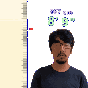 a pixelated image of a man measuring his height with a ruler that says 267 cm 8 ' 9 '