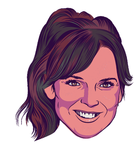 Tess Goossens, the host from Joe radio's 80s Top1000, smiles brightly in this animated sticker.