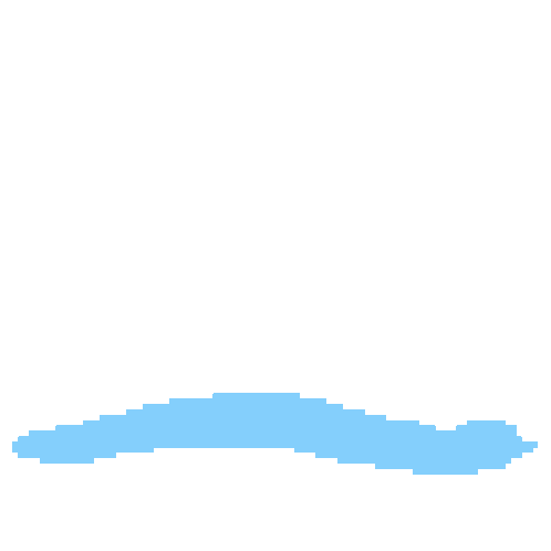 An animated 8-bit pixel art sticker featuring a shark fin moving through light blue water, then revealing the shark's head.