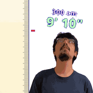 a man 's height is being measured by a ruler that says 300 cm 9 ' 10 '