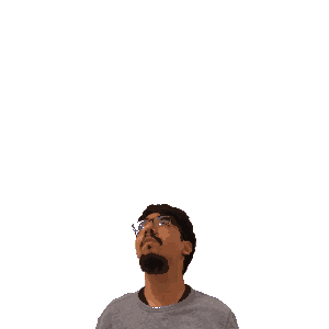 a man with glasses and a beard is looking up at the number 22