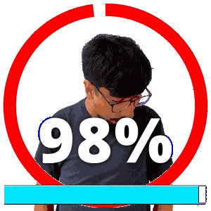 a man wearing glasses stands in a circle with the number 98 % on it