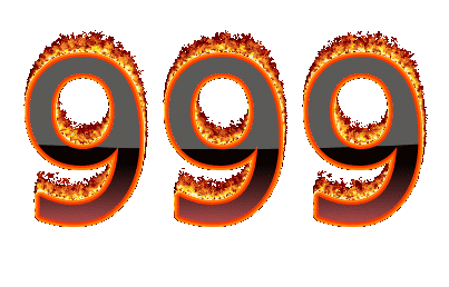 A dynamic animation featuring the number 999 engulfed in a vibrant, flickering circle of fire.