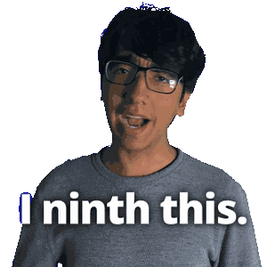 a man wearing glasses and a grey shirt says " i ninth this "