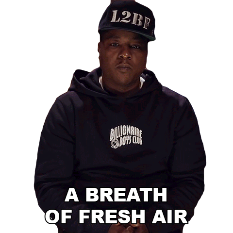 Jadakiss, the American rapper, expresses 'A Breath Of Fresh Air' in this animated sticker, conveying a sense of relief or novelty.