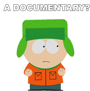 Kyle Broflovski from South Park looks surprised and asks 'A Documentary?' in this animated sticker.