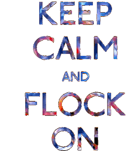 Animated text 'Keep Calm and Flock On' in vibrant colors, a playful nod to the iconic band A Flock Of Seagulls and Mike Score.