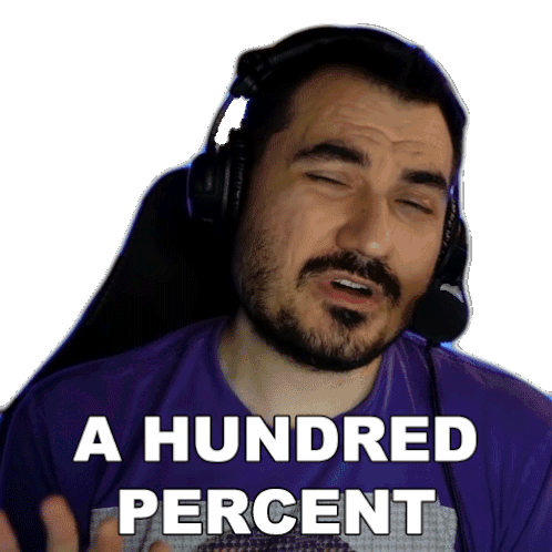 Octavian Morosan, also known as Kripparrian, expresses full agreement with the phrase 'A Hundred Percent' in this animated sticker.