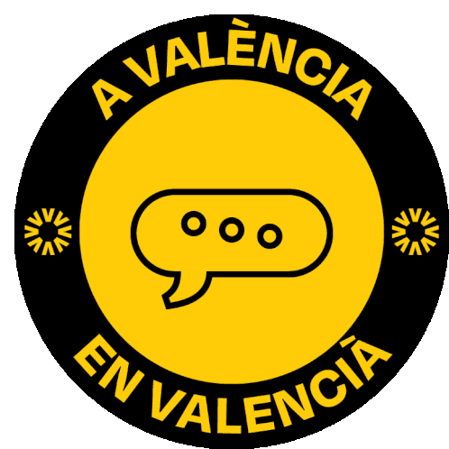 Vibrant sticker promoting the use of the Valencian language in Valencia, featuring the text 'A València en Valencià'.