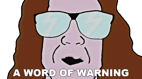 Bradley Hall delivers 'A Word Of Warning' with a serious cartoon expression, wearing sunglasses with lightning bolts.