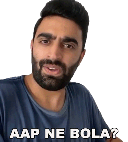 Comedian Rahul Dua asks 'Aap Ne Bola?' (Did you say?) with a pointed finger, perfect for a questioning reaction.