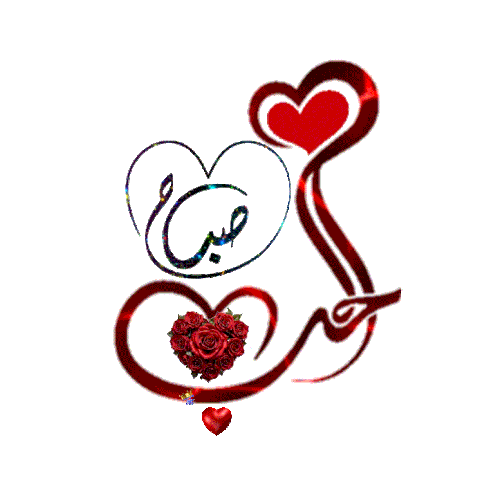 An animated Valentine's Day sticker featuring Arabic calligraphy for 'Morning of Love' and 'Valentine's Day', with hearts and red roses.