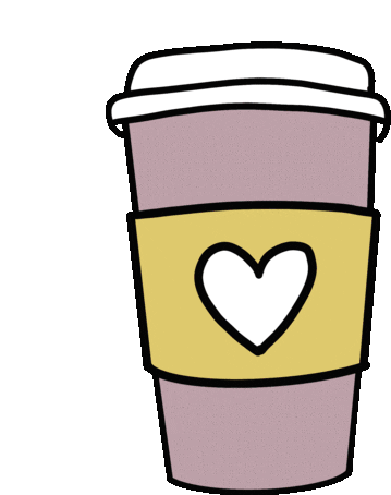 Abiera's morning coffee cup with a heart design, perfect for a cozy start to the day, featuring a blue sleeve.