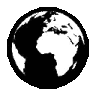 A pixelated black and white globe rotates, showing different continents in a simple, retro style.
