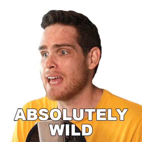 Sam Johnson reacts with wide eyes and an open mouth, exclaiming "Absolutely Wild" in disbelief or astonishment.