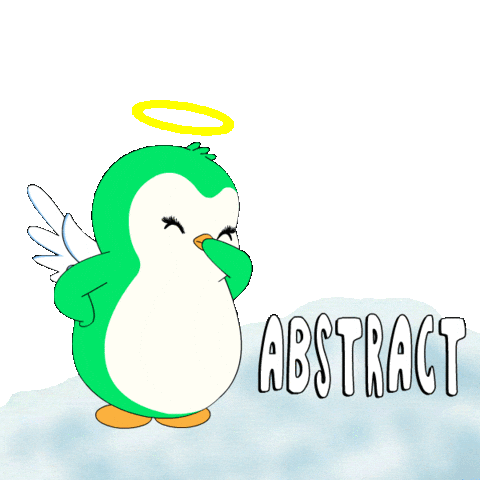 Abster, a cute Pudgy Penguin with wings and a halo, waves as a green heart floats up and 'ABSTRACT' appears.