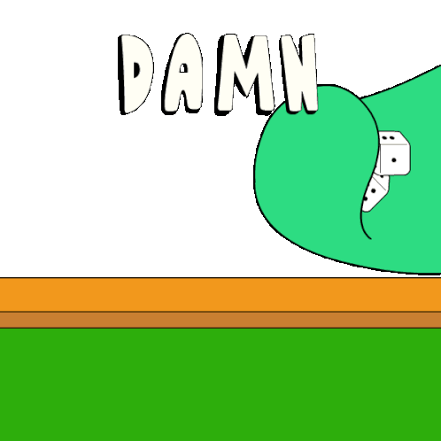 An animated sticker featuring a green hand rolling two dice onto a table, with the word 'DAMN' appearing above the action.