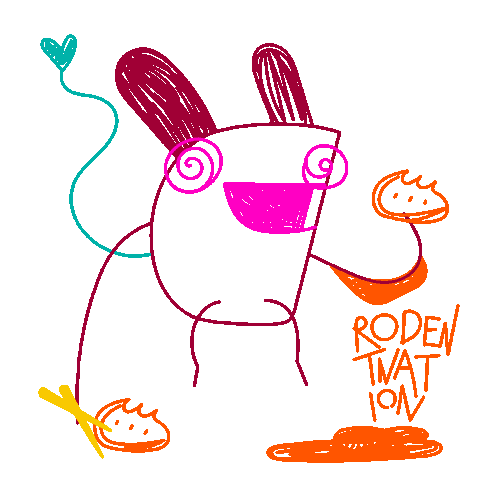 A vibrant, absurdly happy rodent-like creature from Rodent Nation, joyfully indulging in delicious food.