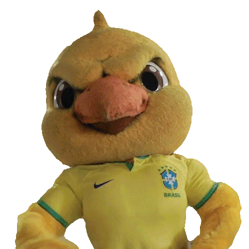 Canarinho, Brazil's angry football mascot, makes the 'Acabou!' gesture, signifying 'It's over!'
