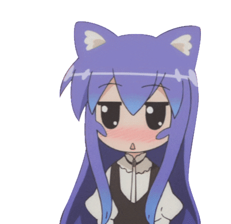 Achi Kochi, a shy anime girl with purple hair and cat ears, blushes adorably with rosy cheeks.