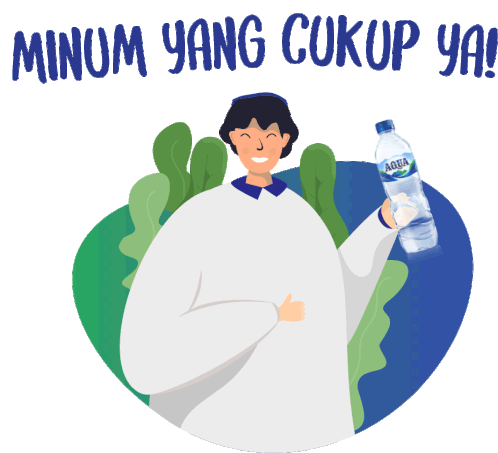 An animated character encourages drinking enough water, holding an Aqua bottle. Perfect for reminding friends to stay hydrated.