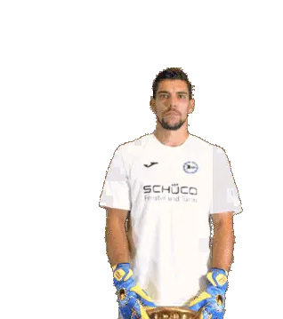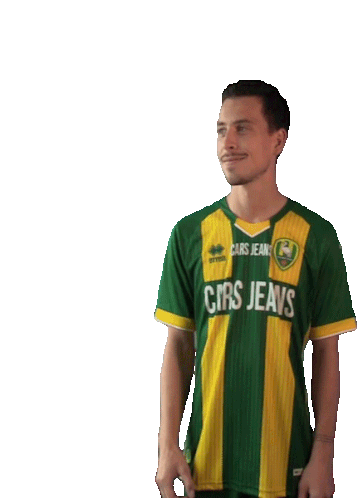 Thom Haye, wearing his ADO Den Haag jersey, makes an OK gesture, showing approval or satisfaction.