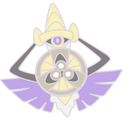 An adorable chibi-style animated sticker of the Ghost/Steel-type Pokémon, Aegislash, featuring its iconic sword and shield form.