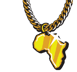 A shimmering gold chain with an Africa-shaped pendant, featuring a 'bling bling' effect. A stylish accessory.