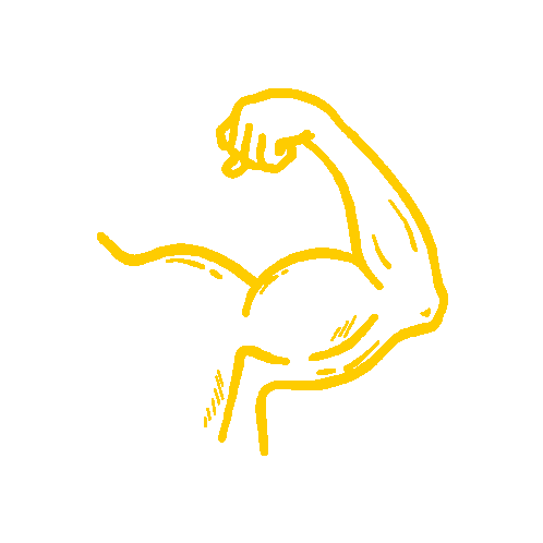 A vibrant yellow line drawing of a strong, flexing arm, symbolizing strength and ambition, perfect for Agaplesion.