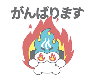 Agent-kun (エージェントくん), a determined character, surrounded by flames, expresses 'I will do my best'.