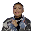 Agnez Mo smiles brightly and grooves to the music, showing off her happy dance in this animated sticker.