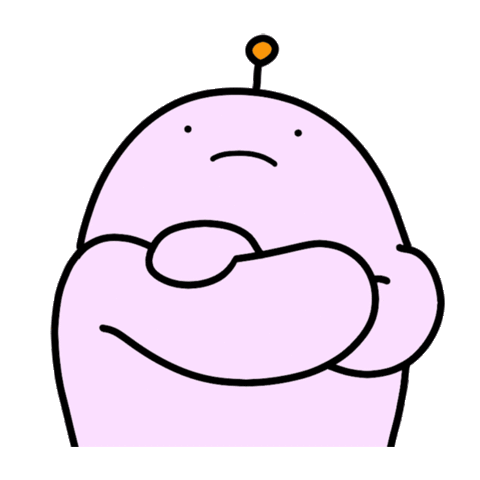 A light purple, blob-like cartoon character with an antenna and crossed arms, conveying a sense of understanding or agreement.