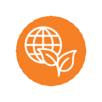 An animated icon featuring a white globe and two green leaves within a vibrant orange circle, symbolizing agriculture and environmental sustainability.