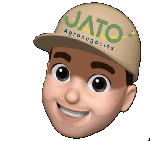 Animated sticker of a smiling emoji-like character wearing a cap with the 'JATO Agronegócios' logo, winking playfully.