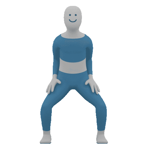 A cheerful 3D animated character in blue and grey dances with a happy smiley face, expressing approval and consent.