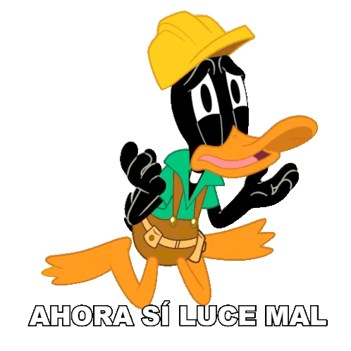 Pato Lucas, wearing a construction hat, looks distressed and sad, with the caption 'Ahora sí luce mal' indicating something has gone wrong.