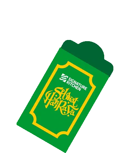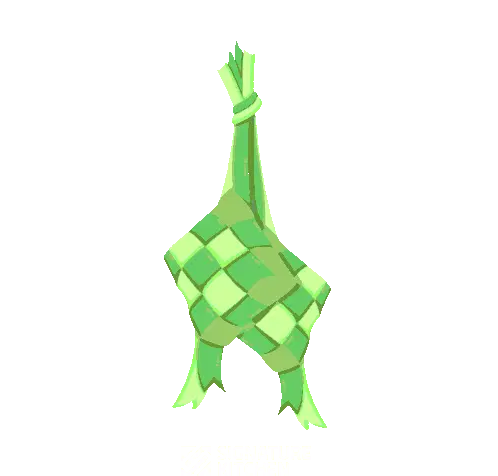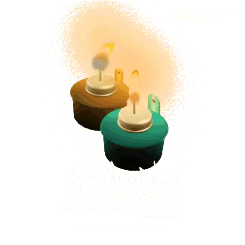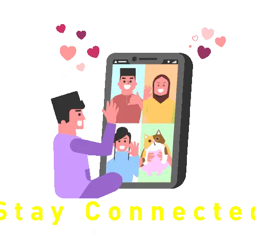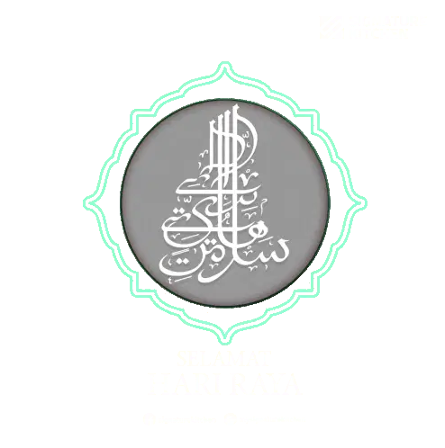 Animated sticker showing a virtual Aidil Fitri greeting with a man and woman exchanging 'Salam Kosong-Kosong' from a laptop and phone.