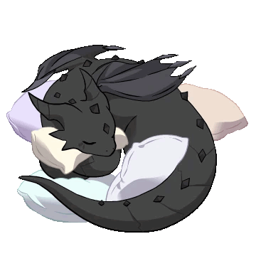 Aileen, the black dragon from Solo Farming in the Tower, peacefully sleeping on a soft pile of colorful pillows.